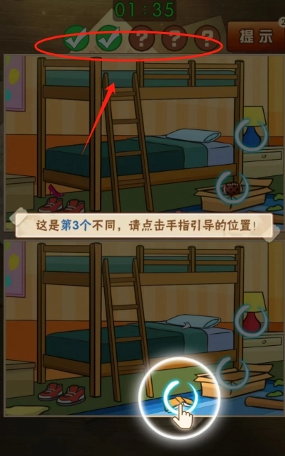 3、打造沉浸式互动体验,当点击到差异点时,会即时触发音效反馈,若点击错误,则限制操作次数,以此提升紧张氛围。