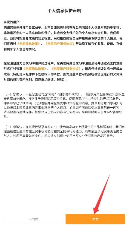 1、打开自家APP,仔细阅读并同意用户协议与隐私政策后,点击同意进入登录页面。