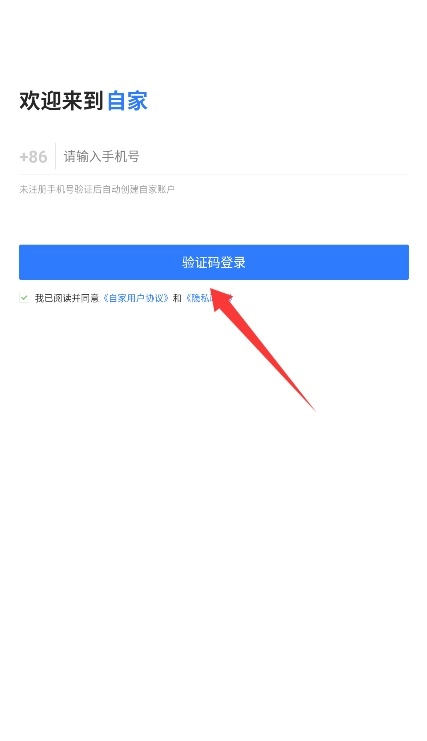2、输入手机号点击验证码登录按钮获取验证短信,填写验证码并勾选用户协议后自动登录。