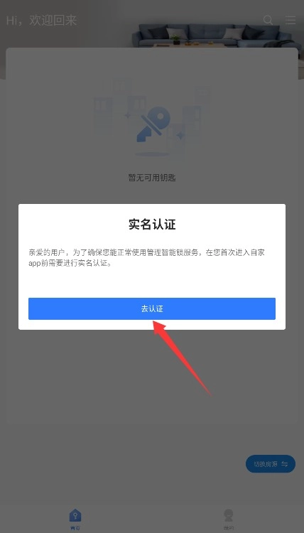 3、成功登录后,系统会自动弹出实名认证提示,点击“前往”,按照要求完成身份信息核验就行。
