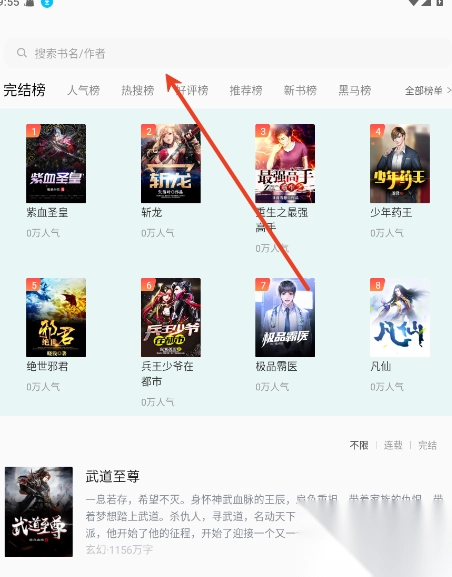 1. 用户需进入小说首页,并在搜索栏中输入关键字。