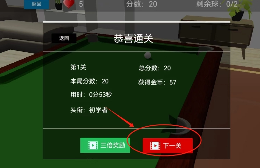 3、完成击打即可,物理引擎逼真流畅,每一杆都充满竞技乐趣。
