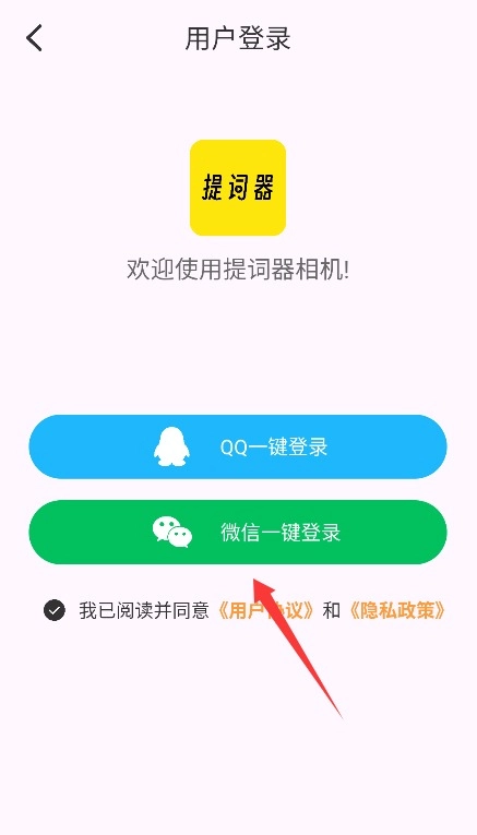 1、打开提词器相机APP,勾选同意用户协议后,选择微信或QQ授权快速登录。