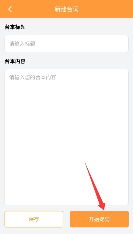 3、填写台词标题和详细内容后保存,点击"开始提词"按钮即可进入智能提词模式。