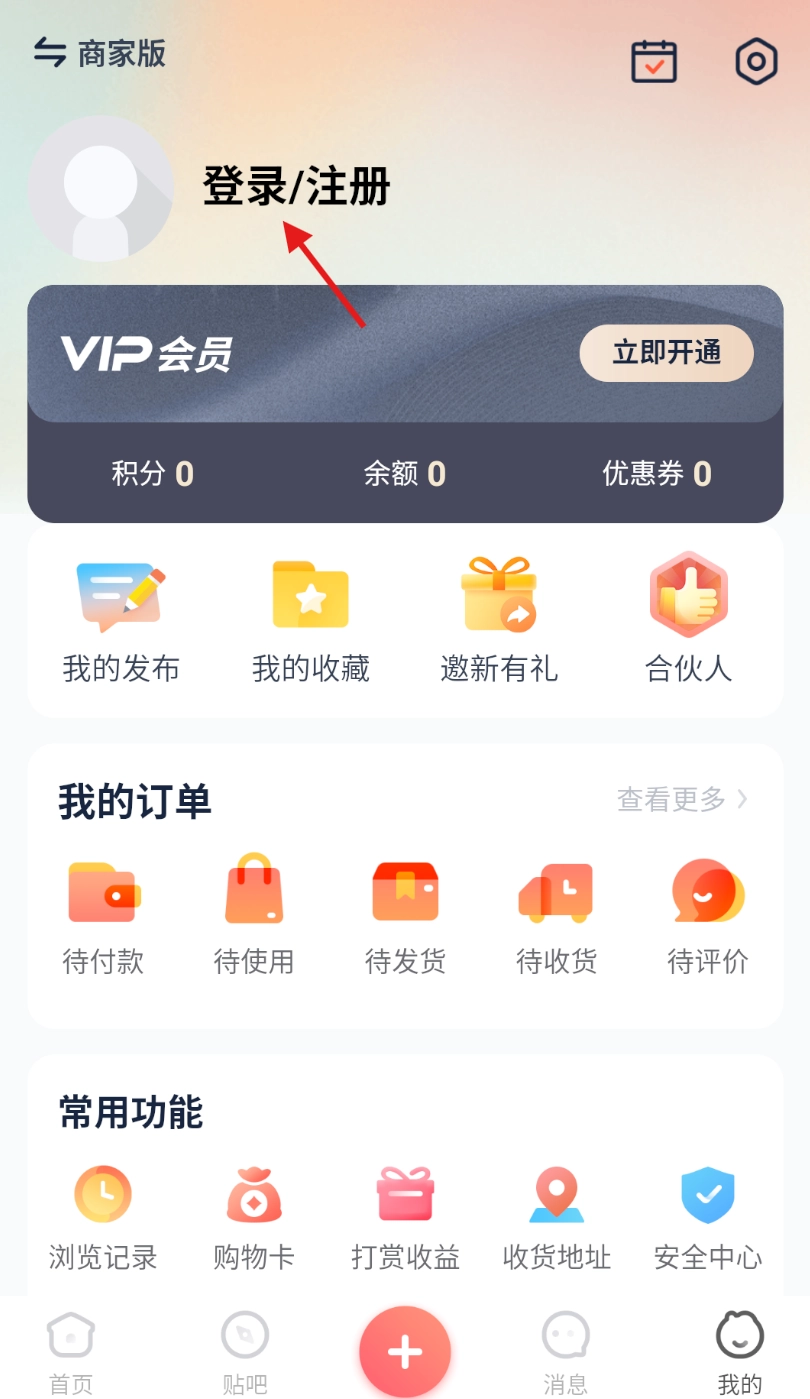 2、在 “我的” 页面找到并点击 “登录 / 注册” 选项,进入登录相关界面。