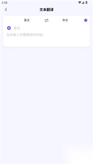 3、来到文件翻译页面,用户可以在输入框中输入想要翻译的内容,随后软件就会进行翻译