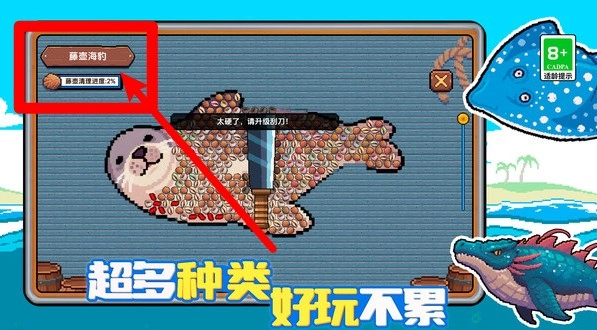 1.点击左上角的“藤壶清理”可查看图鉴完成进度,每次收集新种类藤壶都会填满图形拼图非常有成就感。