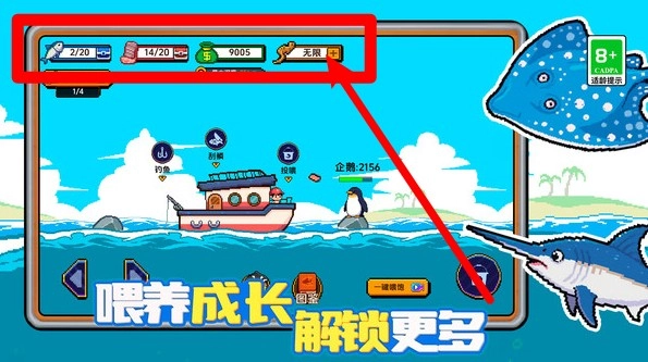 4.升级养成路线:通过任务积累金币,升级船只、渔具与角色属性,带来养成成长的爽感体验感十足让人完全停不下来。