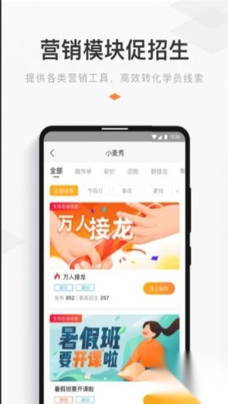 这款软件运用互联网技术,把智能化系统融入教育流程设计之中,支持一键点名、制作营销模板等功能。它不仅大幅提升招生活动的曝光率,还便于管理学生信息,方便与家长随时互动,实现对孩子的全方位管理。同时,能简化信息管理流程,助力教育机构达成更高水准的学生管理与数据统计,提升工作效率。今天,小编给大家带来了小麦助教的最新版本,其中更新了各类功能,感兴趣的用户赶快下载使用吧。