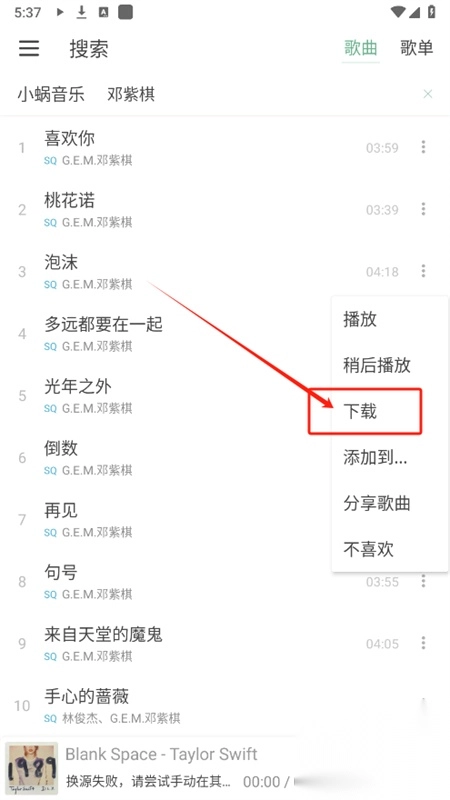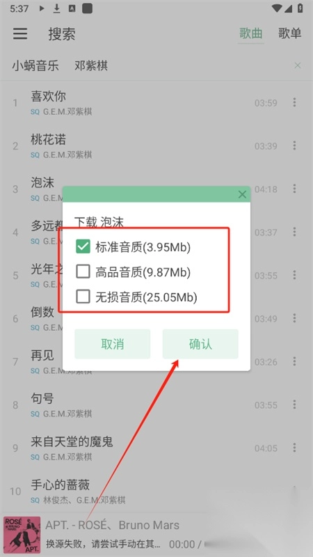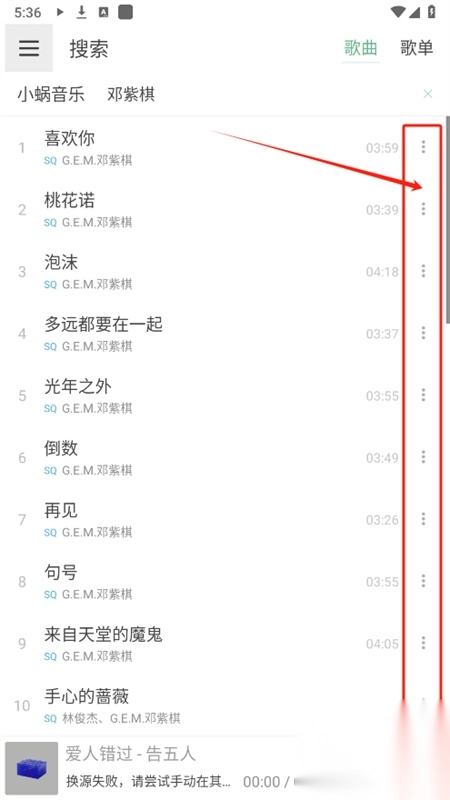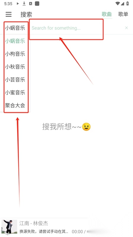 2、选择合适的音源,在搜索框输入歌名或者歌手名称进行搜索
