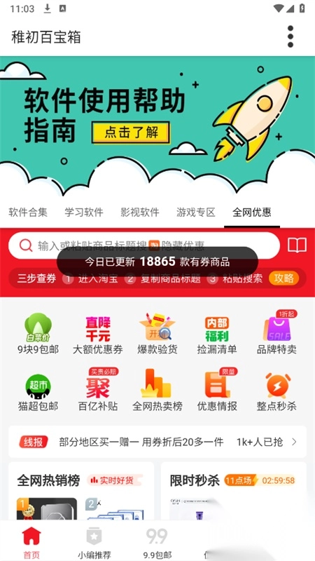 4、点击“全网优惠”,在此处,为大家准备了大量优惠好物以及各类折扣福利。
