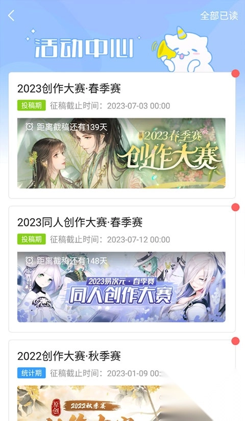5、除了观看,还可以自己参与到其中,超多赛事和征稿等你来参与~