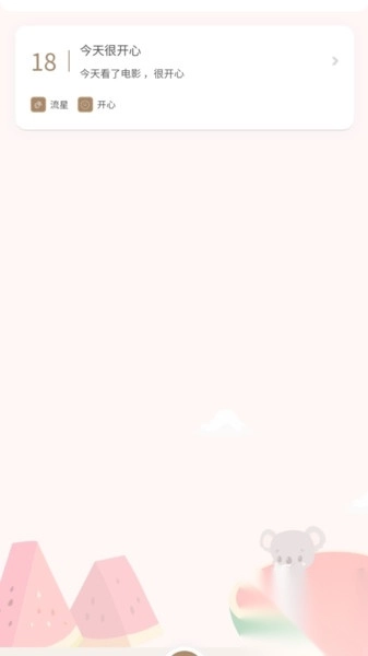 2、日记页面的角落会出现呈现动态效果的卡通形象,它时而眨眼,时而挥手,又或者抱着树枝,为用户制造惊喜。