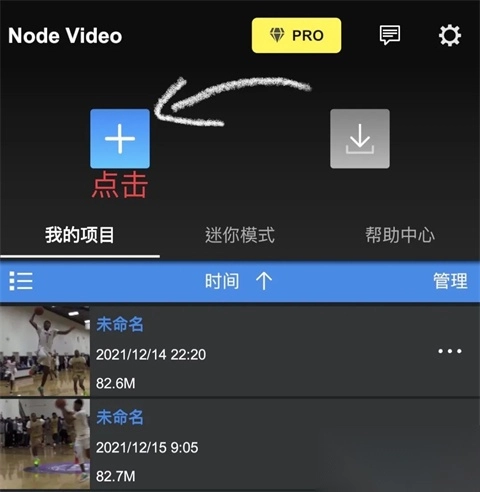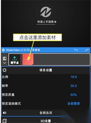 1、首先进入Node Video安卓版,点击这个?号进入剪辑主页导入素材;