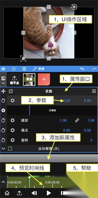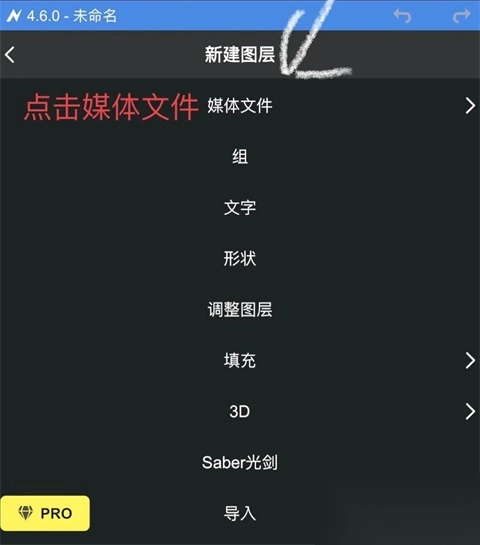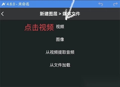 1. 打开Node Video安卓版本,点击红色的“+”号来创建图层并导入素材。除了能导入视频、图像这类媒体,还能够添加形状、填充等类型的图层。