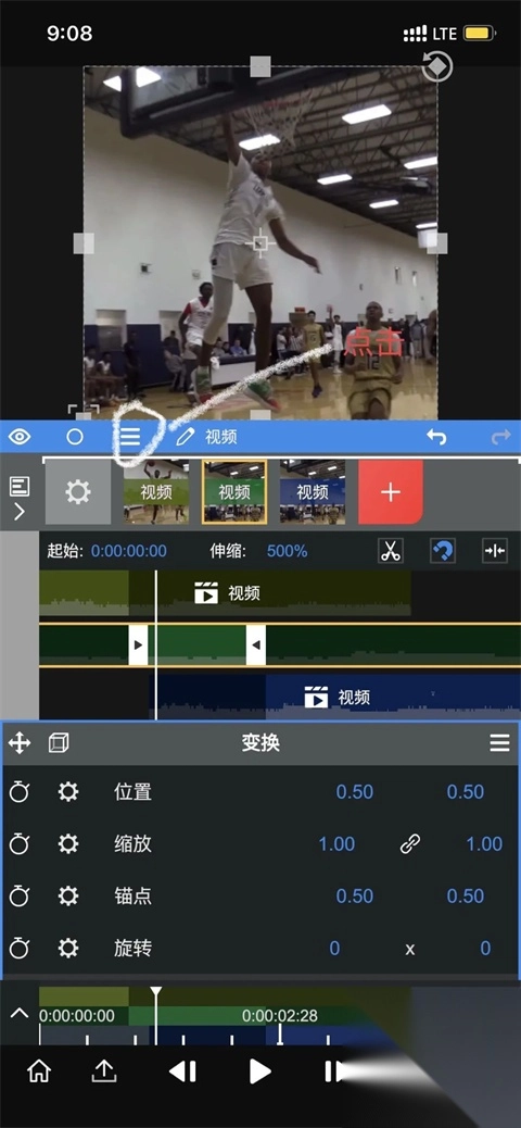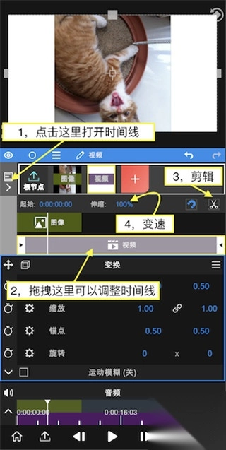 3、视频剪切:任意调整素材的时间,快速掐头去尾。