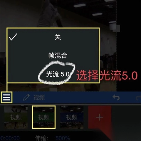 10、点击这三条杠,选择光流5.0,然后调整好参数就可以了;