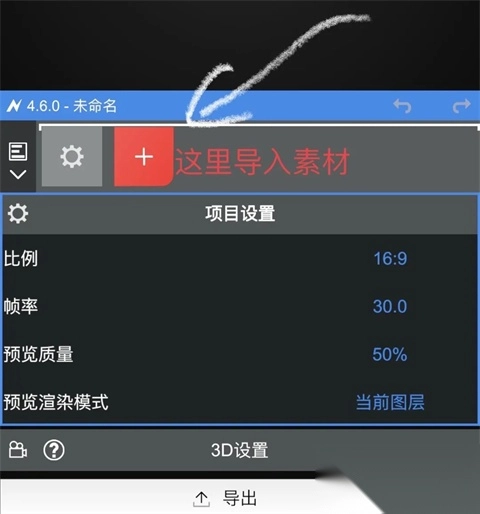 2、点击下方箭头导入素材;
