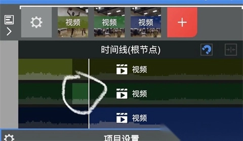 3、继续添加一段视频素材,然后点击根节点,此时我们可以编辑时间线。