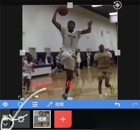 5、选择好素材过后,点击左下角小三角;