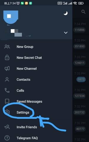 1.打开电报点击右下角设置,点击【隐私】,点击【如果离开超过】