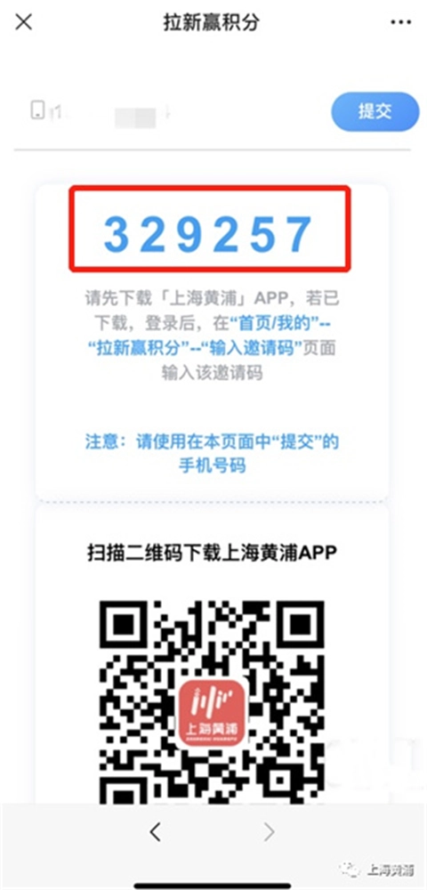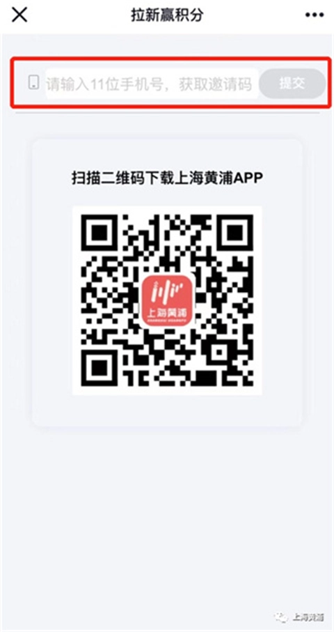 2、点击“马上拉新”,将带有二维码的活动页面分享给未下载注册过“上海黄浦”客户端的好友;