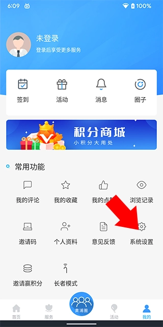 2、进入我的界面,点击“系统设置”;