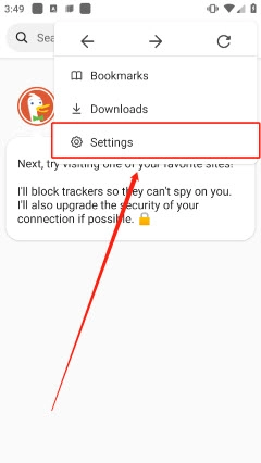 1.打开duckduckgo软件,进入主页,点击右上角三点图标;。