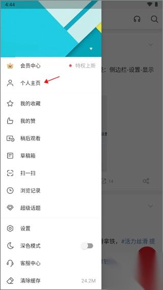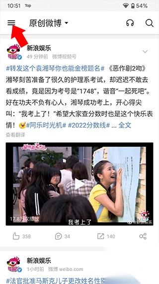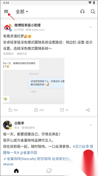 1. 第一步,我们开启微博轻享版,接着点击侧边栏。