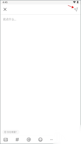 4、在相应区域输入你想要发布的内容,并添加图片。完成撰写后,点击页面右上方的箭头图标,即可将内容发送出去,如此便成功发布了一条微博。
