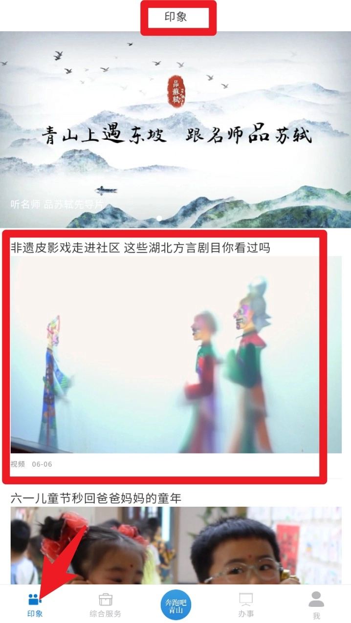 4. 切换到“印象”栏目,就能观看视频专题,其中涵盖皮影戏、人物故事等城市文化片段。
