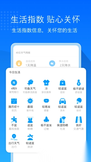 1. 具备精准定位功能,能便捷锁定用户所处地区,并分析出该地区当前及未来15天的气候情况。
