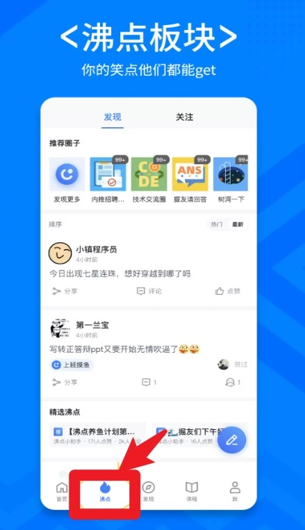 2、“沸点”版块主打轻松互动,汇集程序员段子、日常趣事与热帖话题,适合日常放松浏览。