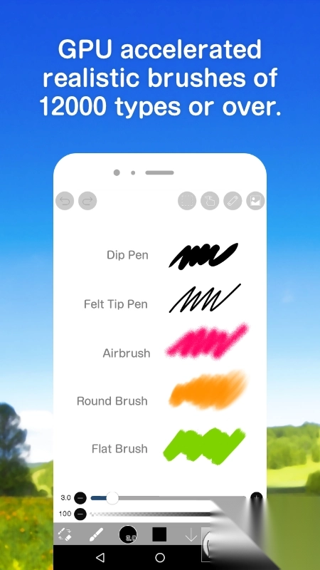 5、下载其他人的画作。【刷机功能】1、平滑,最大120 fps刷2、G笔、笔、数码笔、气刷、圆刷、平刷、铅笔、油画颜料、木炭、蜡笔、邮票等142种画笔图案3、各种刷子参数,例如进入厚度、穿刺厚度、尖端不透明度、图案的初始旋转角度、旋转跟踪4、快速滑块,刷子厚度和刷子不透明度准备好操作5、可以实时检查的画笔预览【图层功能】1、可无限添加的图层功能2、混合模式,例如每层不透明度、alpha混合、加法、减法、乘法3、剪切功能,便于剪裁图像4、各种图层命令,如图层复制,从照片库导入、左/右反转、颠倒、图层旋转、移动、缩放5、图层名称设置功能,用于图层识别【漫画功能】1、全文工具功能,支持垂直书写、水平书写、修剪、字体选择、多文本2、46种屏幕色调功能,如点、噪声、水平、垂直、对角线、十字、方形等【选择范围功能】1、每个像素的256个灰度的选择范围(选择层)2、反转选择、移动、旋转、缩放3、画笔、填充、图层复制、图层组合、图层移动、旋转、缩放【颜色功能】1、从调色板中选择,对注册数量没有限制,从色调圆圈中选择,从HSB中选择,从RGB中选择,丰富的颜色选择2、通过拖放到调色板保存3、点击并按住吸管功能【绘图功能一般】1、用于绘制图形等的标尺工具功能(以前的标尺、圆形标尺、椭圆标尺、浓度线标尺)2、绘制支持功能,如相机抖动校正和强制进入3、37种滤镜功能,包括亮度、对比度、色彩平衡、线条提取、灰度、渐变、模糊、动画背景、漫画背景、色差4、材料工具功能,可以使用1600点或更多的纹理和色调5、除了各种画布尺寸,如SD、HD、明信片,可选的画布尺寸规格功能6、画布的任意旋转功能7、背景颜色(白色,明亮透明,深色透明)设置功能8、“取消”“撤消”功能最多100步或更多(取决于存储的可用空间。)9、刷子,橡皮擦,指尖工具,模糊工具,填充和吸管功能10、快速,流畅的平移和缩放功能