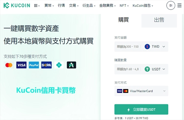 KuCoin交易所的入金方式包含信用卡、C2C买币以及加密货币充值。若以台币入金,仅能采用信用卡途径,不过手续费会稍高一些。在此建议通过加密货币转账至该平台进行交易。