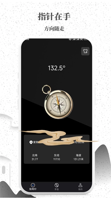 【罗盘、指南针】作为方向测量工具,可快速显示东西南北方向,同时还能呈现当前地理位置、经纬度以及海拔,是一款功能全面的综合性罗盘指南针工具。在这里,罗盘与指南针一键即可切换,更有海量罗盘、指南针皮肤供你挑选~