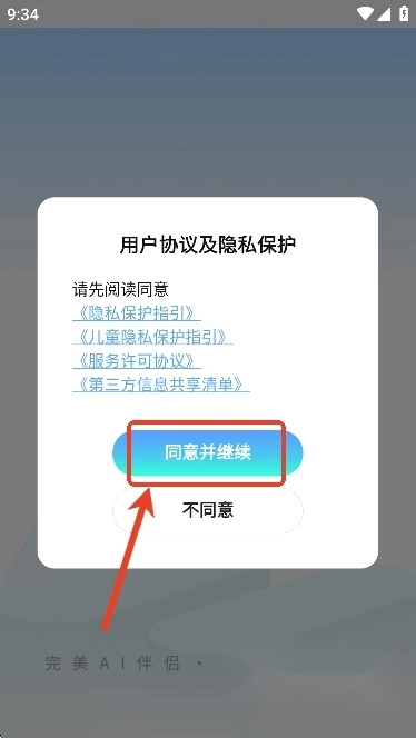 用户们可以先点击“同意并继续”,同意软件协议政策