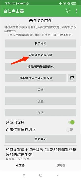 1. 下载并安装自动点击器app,安装完成后打开软件,在此之前需先设置辅助功能权限。