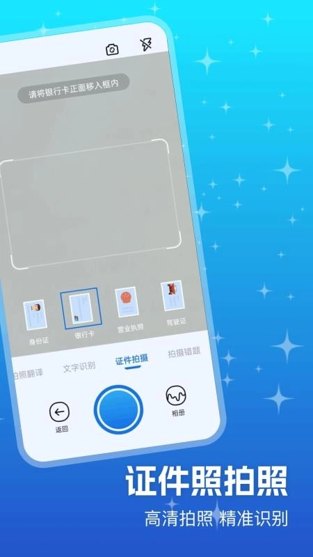 支持用户使用相机来实时拍摄证件照,让你轻松扫描拍摄证件,便捷制作证件照。