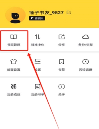 1. 进入“我的”界面,接着点击书源管理功能。