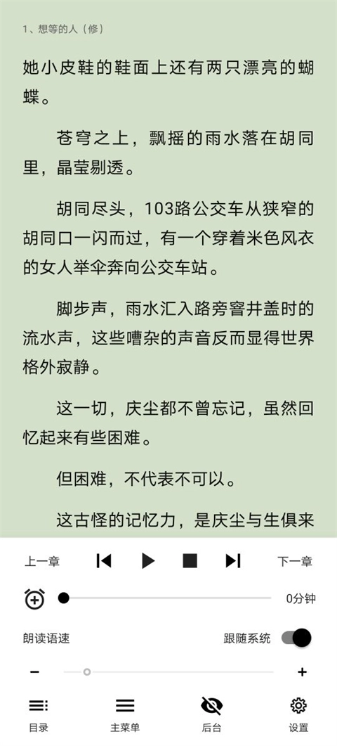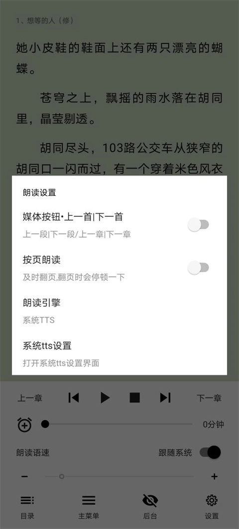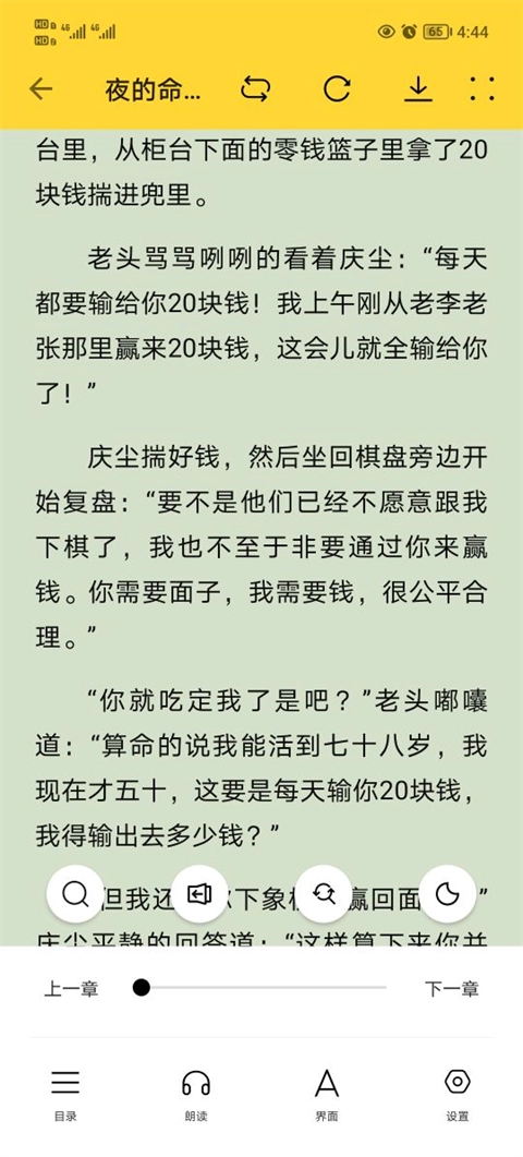 1、在阅读小说界面点击屏幕,长按朗读功能