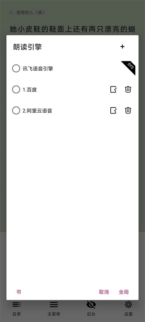 5、您还能通过点击右上角的“+”号,以此来新增朗读引擎。