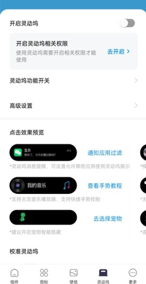 2、当进入功能页面后,找到并打开“开启灵动坞”的开关,接着开启悬浮窗权限以及无障碍模式权限。