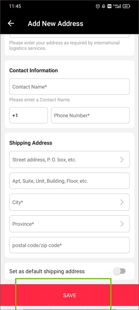 3、这里会管理所有的收货地址,点击下方的ADD NEW ADDRESS