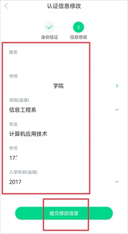 4、最后填写正确的学校名称、学号等必要信息,点击“提交”,这样就完成学校绑定的更换啦!
