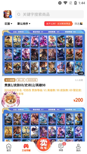 买卖服务:支持用户发布自己的游戏账号进行出售,也提供购买服务,促成双方交易。