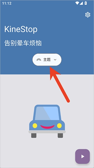 1. 打开app后,无需注册登录,核心的防晕车功能可免费使用。使用时,可先在app中点击【主题】。