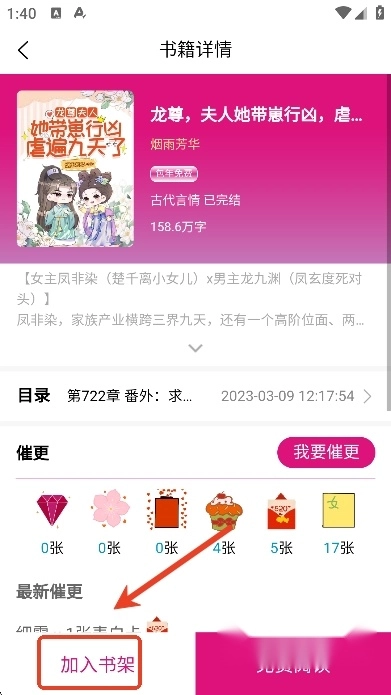 用户们挑选完小说后,可以点击“加入书架”,把喜欢的小说收藏到书架