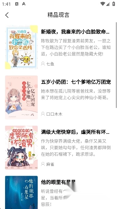 超丰富小说资源库,各类题材应有尽有!奇幻、科幻、仙侠、都市、爱情、校园等多种类型一网打尽。无论你痴迷热血玄幻的惊险冒险,还是沉醉于缠绵悱恻的浪漫爱情故事,又或是向往脑洞大开的科幻奇境,都能在此邂逅心头好。资源每日实时更新,让用户第一时间看到热门小说的最新章节,追更无需漫长等待。这里还有众多原创图书资源,为读者带来更多新颖独特的阅读体验。