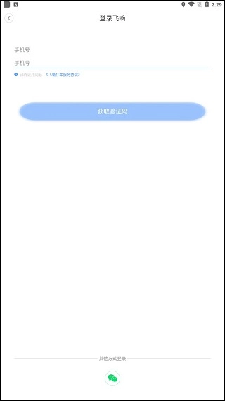 1、乘客安装飞嘀打车后,首次运行输入手机号码进行验证注册。